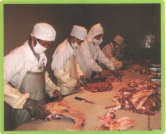 公司直屬優(yōu)質肉牛育肥場,位于平度市田莊鎮(zhèn)宮東村南1公里處,始建于2009年3月,設計存欄3000頭,現(xiàn)存欄1000余頭,占地100多畝,現(xiàn)有建筑面,18600平方米。公司擁有一批具有養(yǎng)牛經(jīng)驗的管理、技術、飼養(yǎng)人員。聘請了全國養(yǎng)牛方面的知名專家作為技術顧問。養(yǎng)牛場現(xiàn)有職工23人,具有初、中級以上技術等級和從事養(yǎng)牛5年以上的工人占70%以上,有管理和技術人員5人,其中畜牧獸醫(yī)專業(yè)中、高級以上職稱3人。本公司通過食品安全認證、質量體系、無公害認證,是國家地理標志保護產(chǎn)品。是肉牛定點屠宰單位。被評為“島城市民最喜愛的農產(chǎn)品品牌”、第一批“平度好食材”。本公司肉牛養(yǎng)殖場喂牛所用飼料全部采用自己配制的飼料,主要使用大豆、玉米、麩皮,大豆經(jīng)炒料機炒熟后再分碎飼喂,無任何添加劑。公司有火鍋料理店6處,安排從業(yè)人員80多人。公司擁有年屠宰加工1萬頭肉牛的屠宰生產(chǎn)線,嚴格執(zhí)行國家GB/T17238-2008鮮凍牛肉分割標準,并按伊斯蘭清真屠宰要求進行屠宰分割以及排酸嫩化處理。我公司生產(chǎn)的牛柳、西冷、肉眼、上腦、S腹肉等產(chǎn)品主要銷往上海,北京,南京,濟南,青島,煙臺等大中城市的四、五星級酒店,用作西餐、韓餐、日餐、中餐等深受用戶青睞。